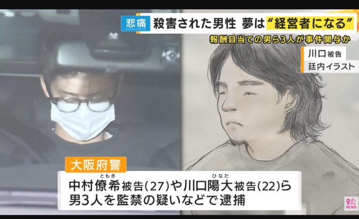 事件が発覚したのは、去年11月。 【記者リポート】「こちらの高さが2メートル以上ある防波堤の向こうで、遺体が流れ着いているのが見つかったということです」 激しく損傷した遺体となって見つかった、宮城竜斗さん。死因は窒息死で、両足と顔は粘着テープで縛られた状態でした。 大阪府警は、複数犯による犯行とみて捜査をはじめ、遺体発見からおよそ20日後。 【記者リポート】「中村容疑者の身柄が検察庁に送られます」 警察は監禁などの疑いで、中村僚希被告(27)や川口陽大被告(22)ら男3人を逮捕。 中村被告は殺人と死体遺棄の罪でも逮捕・起訴され、主犯格とみられています。