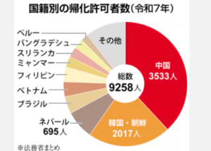 - 【日本人に帰化した中国人】2年連続で国別最多3500人 令和7年、総数は9200人[産経]26/03
