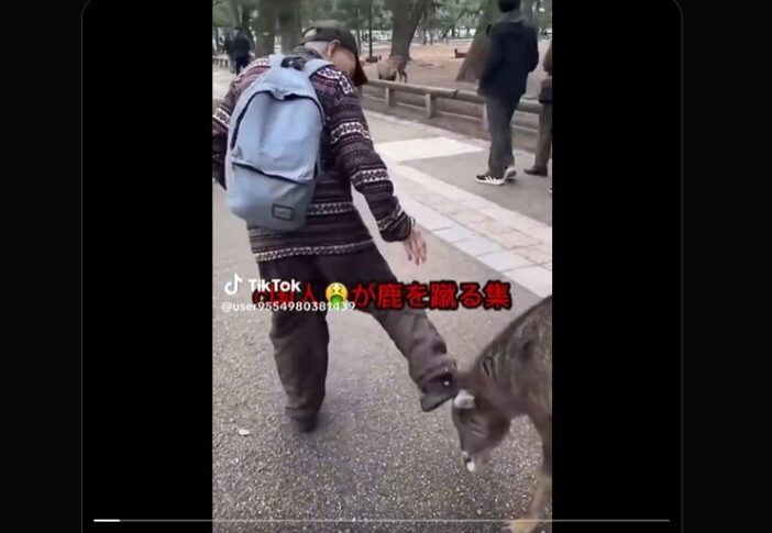 中国人が鹿を蹴っている
