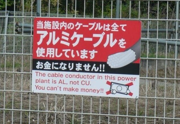 【悲報】「銅線ではありません。盗まないで!」の看板、日本中で増えまくる