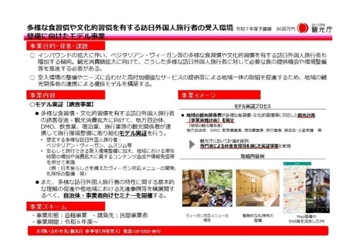 ベジタリアン・ヴィーガン・ムスリム旅行者受け入れ整備事業、公募開始