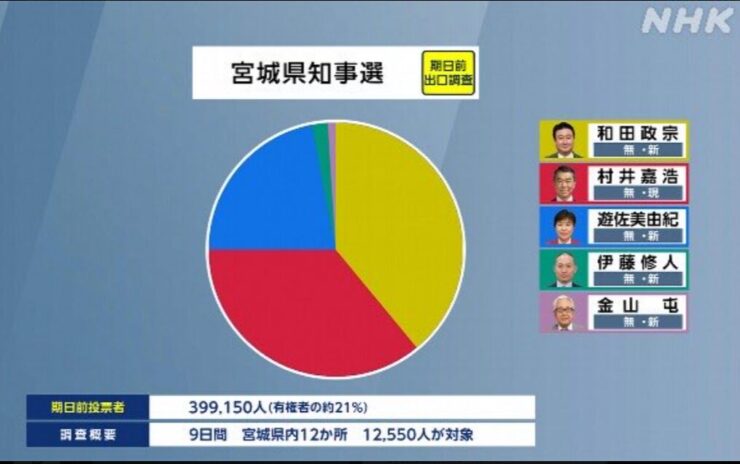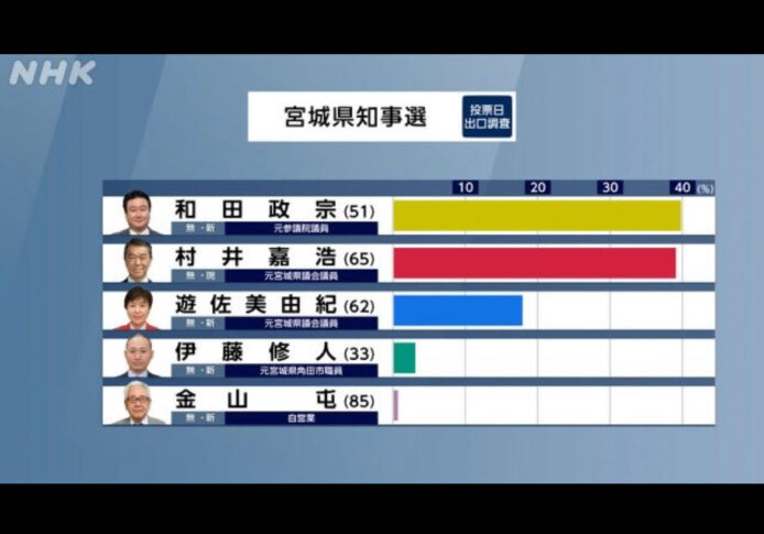 【宮城県知事選】出口調査で和田政宗氏がわずかに優勢