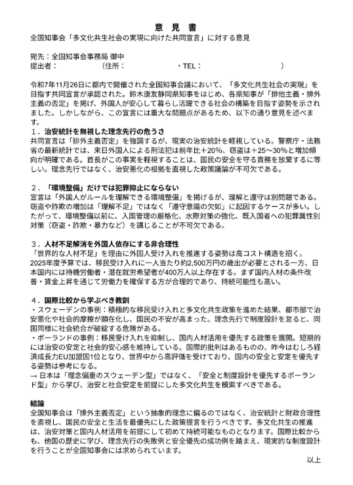 - 県のトップが多文化共生や多民共生共存を宣言しても、実際に触れ合うのは市民であり、町民であり村民であるわけですから、多民族よりも市民・町民・村民の方々に手厚い支援をお願いします。