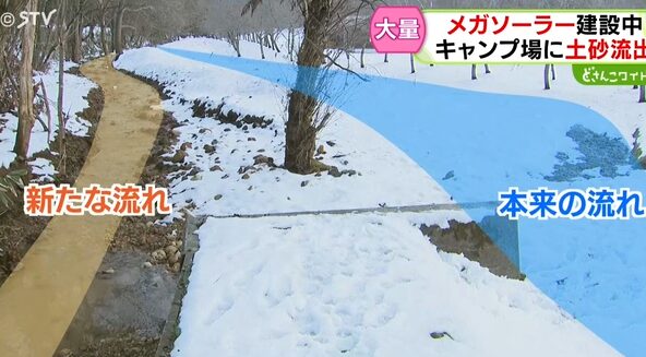 メガソーラー建設工事が原因か キャンプ場で土砂流出…そのまま放置 小川のカタチに変化も 北海道