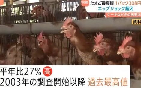 【たまご平均価格1パック308円】過去最高値を更新 エッグショック超える[TBS]