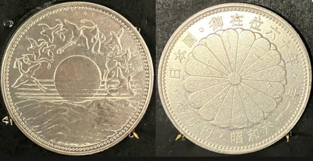 この記念銀貨は、昭和天皇の在位60年を記念して1986年に発行されたもの。額面は1万円で、表には菊花紋章が刻まれており、収集価値も高いとされる。外観が本物に酷似していたことから、信用金庫側も一時は見分けがつかなかったという。精密な重さや材質の分析でようやく偽造と判明した。