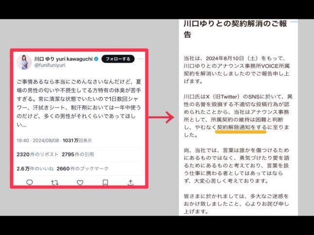 ん〜あの投稿はどうかと思うけど、契約解除はやりすぎかな〜と思うな。