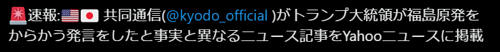 【動画】共同通信→トランプ氏が福島原発をからかう発言をしたと事実と異なるニュース記事をYahooニュースに掲載か