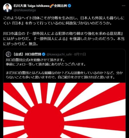 国会議員がヘイトなど発言するとはね