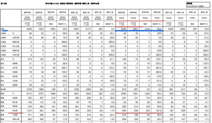 【悲報】令和6年1-6月 埼玉が外人犯罪率No.1エリアに‼全国来日外国人検挙増加3分の1が埼玉