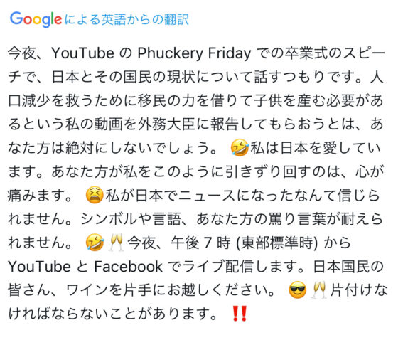 「日本人は外国人を差別している」などというスピーチを全世界に発信し、準備もなく移民受け入れを拡大したメガネ👓が悪いような気がする。