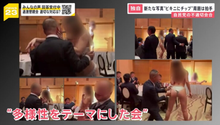 - どう見ても出張セクシーキャバ風景。(よくしらないけど) でも、必要な行事なのでしょう。 自民党青年部主催で、議員さん達楽しそうですね。