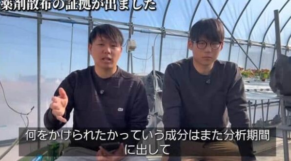 「楽農tech」は、りょうさんとたかまささんによる2人組の若手農業系YouTuber。2024年1月より活動をスタートし、最近はいちご観光農園の開園準備を進めていた。 しかし、26年1月6日に公開した動画では、7棟あるいちごのビニールハウスのうち2棟で葉が枯れる現象が発生し、2列に並べられた苗のうち片方が枯れていてもう片方は枯れていないなどの状況から、「何者かに除草剤を撒かれたのではないか」という疑惑が浮上していた。