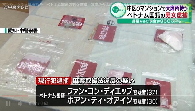- 【ベトナム国籍】マンションで大麻所持か ベトナム国籍の男女逮捕[中京]