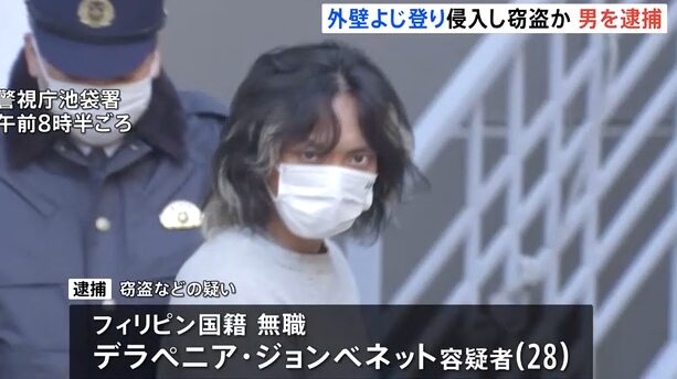 - 【フィリピン国籍の男を逮捕】マンションの外壁をよじ登り3階の部屋に侵入…540万円相当盗んだか [TBS]