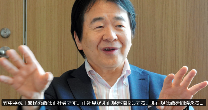 【竹中平蔵】「《庶民の敵は正社員》です。正社員が非正規を搾取してる。非正規は敵を間違えるなよ。」