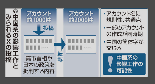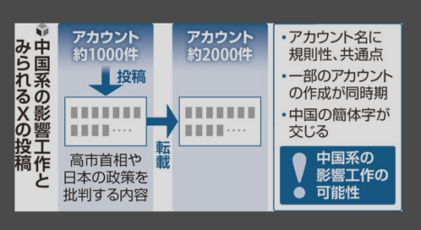 日本を批判するアカウント群3000件規模、X投稿・拡散…衆院選前から中国系の影響工作か[読売]26/02