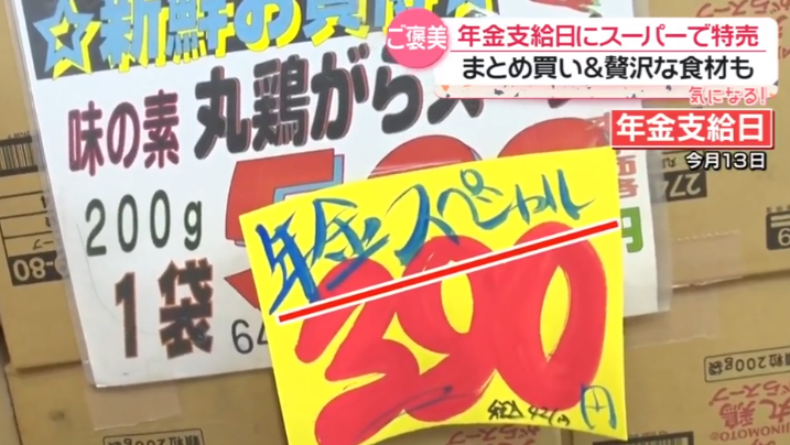 今年初めての年金支給日、いわゆる「年金スペシャル」と銘打ったセールを行うスーパーには多くの高齢者の姿がありました。バナナが1袋108円、レトルト雑炊が3食で258円といった価格は、家計を預かる人にとって確かに魅力的に映ります。買い物かごを手にしながら、少しでも安い商品を探す様子は決して珍しいものではありませんでした。