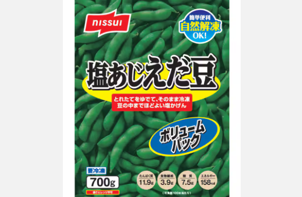 ニッスイは27日、冷凍枝豆「塩あじえだ豆ボリュームパック」の一部から基準値を超える農薬が検出されたとして、該当する商品約3万3000パックを回収すると発表した。対象は原産国が中国で、賞味期限が2027年4月19日か20日の商品。健康被害の報告はない。
