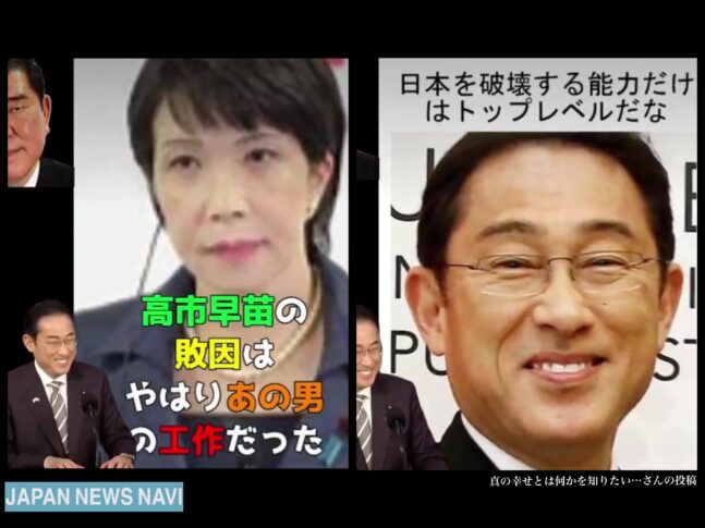 • 高市さんを排除した時点で、岸田は国民の信頼を失ったと思う。