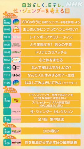 • うちはテレビ無いので良かった こんな内容の多様なラインナンップ いらないですよ性教育とか必要だと 思ってますけど、内容は責任を持って 選んで教えます。私は仮面ライダーとか戦隊とか大好きな子供時代を過ごした女の子です。服装やスニーカー が基本。それでも心は男じゃない 個人の自由