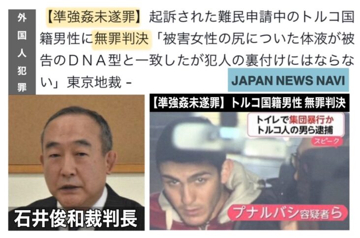 【準強姦未遂罪】起訴された難民申請中のトルコ国籍男性に無罪判決「被害女性の尻についた体液が被告のDNA型と一致したが犯人の裏付けにはならない」東京地裁
