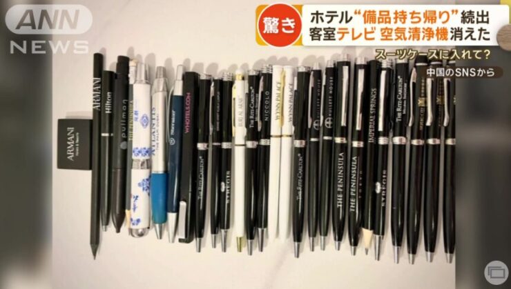 飲み物やアメニティーだけでなく、部屋に備え付けのペンまで持ち帰る人もいました。
