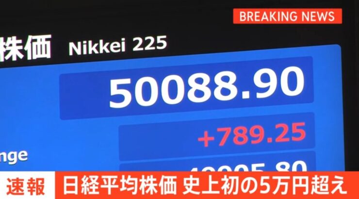 きょうの東京株式市場で日経平均株価は史上初の5万円を突破しました。