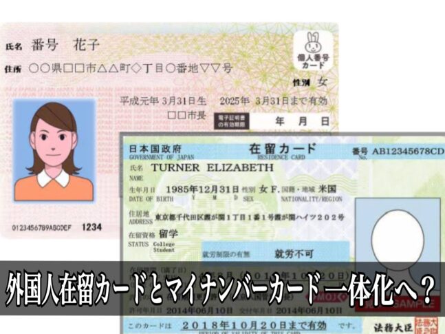 【外国人在留カードとマイナンバーカードを一体化へ】表面に国籍、在留資格の種類、就労可否など明記 ←