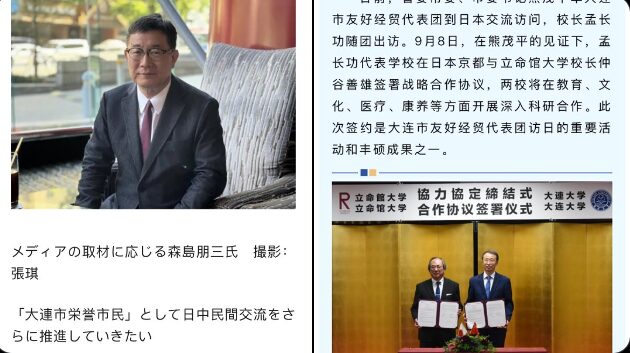 【三木慎一郎さんの投稿】中国共産党に次々と飲み込まれていく日本の大学が多い。 立命館大学の森島理事長が中国大連市栄誉市民ということもあり2024年9月8日に立命館大学と大連大学は協力協定を締結した。 日本の大学が中国から学ぶものはなにもない。 ただ留学生が欲しいだけ。 そしていろんなものが中国に盗まれるんだよ。