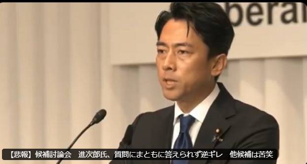【悲報】候補討論会 進次郎氏、質問にまともに答えられず逆ギレ 他候補は苦笑